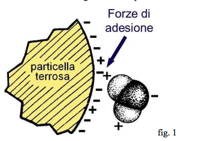 terreno completamente privo di umidità. In queste condizioni le particelle di terreno sono in grado di captare acqua dall’umidità atmosferica grazie alle cariche elettriche distribuite sulla loro superficie e alla natura dipolare delle molecole d’acqua. Le forze di natura elettrica che si generano tra la superficie terrosa e le molecole di acqua sono dette forze di adesione.
