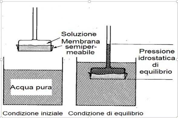 un innalzamento del livello della soluzione fino al raggiungimento dell’equilibrio tra la pressione esercitata dal peso del liquido nella colonna e la pressione osmotica generata dal soluto. Si precisa che la pressione osmotica si manifesta solo tra la soluzione circolante del terreno e le piante in quanto l’assorbimento avviene attraverso la parete cellulare che è assimilabile a una membrana semipermeabile. Quanto più alta è la concentrazione di sali disciolti nella soluzione circolante del terreno, tanto più alta è la pressione osmotica della soluzione, tanto maggiore sarà lo sforzo richiesto alla pianta per l’assorbimento dell’acqua.