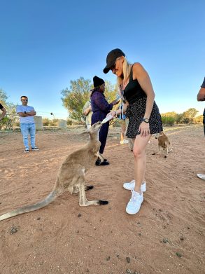 Giunti ad Alice Springs, abbiamo visitato il fantastico Kangaroo Sanctuary. Abbiamo conosciuto Chris Brolga Burns, il fondatore di questo santuario. La missione di questo posto è salvare e prendersi cura dei canguri orfani, raccoglierli dalla strada e portarli in questo posto per nutrirli e prepararli a tornare nella fauna selvaggia. Ho giocato con i canguri, allattato uno di quelli e preso tra le braccia i cuccioli. Vedere i canguri così da vicino e poterli accarezzare ha reso sicuramente unico quel momento.