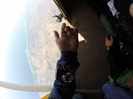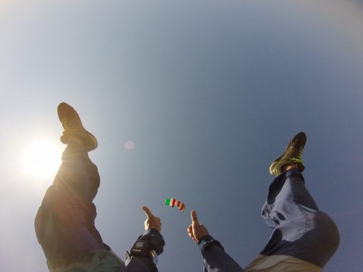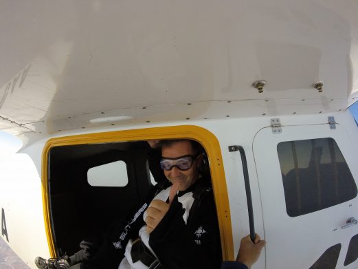 Portellone aperto, i primi due si affacciano, un attimo e sono già fuori, in volo. Li vedi sparire, non fai in tempo a realizzare che è il tuo turno e sei già con le gambe sospese al vento. Sorridi a Luca, il tuo video flyer, che ti punta la GoPro. Ancora un istante e sei… libero!