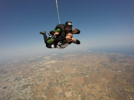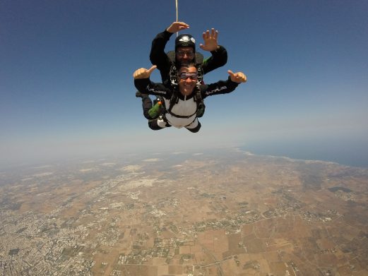Ringrazi tua moglie. Le dichiari il tuo amore. Lo stesso fai con i tuoi figli che, per i tuoi 50 anni, l’hanno convinta a farti l’unico regalo che avresti voluto: lanciarti in volo con un paracadute.