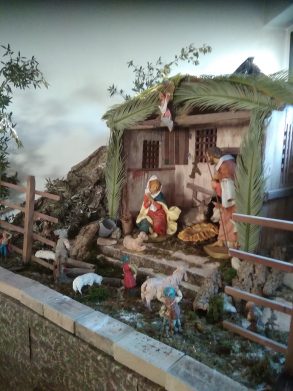 Un presepe nella chiesa del Crocifisso, a due passi dalla postazione della montenegrina. Ricorda che nessuno volle accogliere la partoriente Maria e suo marito. Finalmente una stalla con un bue ed un asinello, dicendo “avanti, accomodatevi!” con un muggito ed un nitrito, offrì ospitalità. Calda. Che il cuore degli uomini non era stato in grado di elargire.