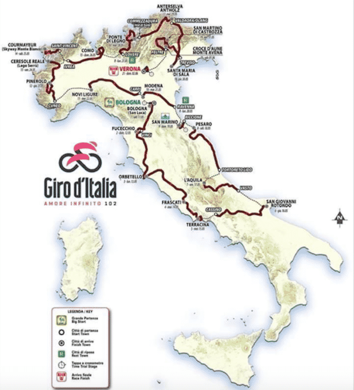 A guardare la cartina, sembra più il “Giro del Centro-Nord”. I terroni si accontentino di guardarlo in TV.