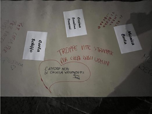 Ho letto: «Per Carla, per Giulia, per Vincenza. Per tutte! Faremo rumore per voi!!».