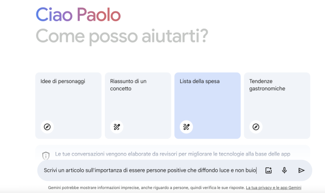 Nota n.2 – Gemini ti avverte: «Gemini potrebbe mostrare informazioni imprecise, anche riguardo a persone, quindi verifica le sue risposte».
