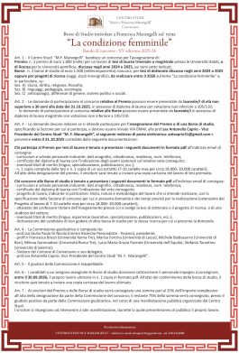 Anche quest’anno la Fondazione Marangelli mette a dispozione borse di studio per laureate-laureati e per progetti di ricerca di dottorato sulla condizione femminile. L’obiettivo è premiare e sostenere la ricerca da parte di di uomini e donne su tematiche interdisciplinari focalizzate sulle donne e sulle relazioni tra i generi