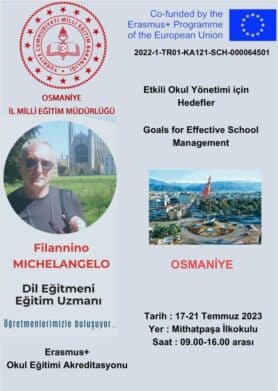 Sono stato invitato a tenere un Corso di aggiornamento per Dirigenti scolastici in Turchia nell’ambito del progetto Erasmus+ School Education Accreditation n. 2022-1-TR01-KA121-SCH-000064501.