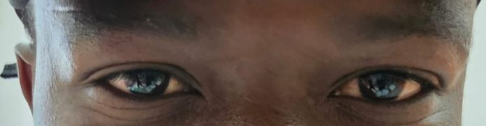 Seduto di fronte a me intravedo sopra la cornice del mio pc solo una macchia nera riccia e due palle bianche come occhi …sembrano quasi sospesi.