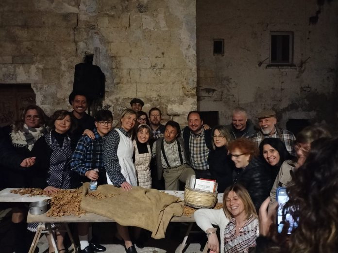 L’attività agricola legata alle mandorle è certamente una metafora della sopravvivenza sociale dell’epoca. Tali attività erano delegate alle donne che conoscevano i nomi delle diverse qualità e le modalità con cui maneggiarli e selezionarli. Erano pratiche in cui il sapere del popolo si disvelava, un rito. Le donne lavoravano, ma mentre le mani procedevano eliminando il mallo, frantumando la scorza, selezionando i frutti: dialogavano, cantavano, sognavano.