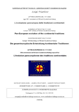 Il 17 novembre 2020, in occasione del 126esimo compleanno di Coudenhove-Kalergi, esponente paneuropeista e fondatore del relativo movimento nel secolo scorso, ho avuto modo di divulgare un mio comunicato politico internazionale attraverso la Società Europea Coudenhove-Kalergi, in più lingue. Il titolo in italiano era “L’evoluzione paneuropea delle tradizioni continentali”, il titolo del mio testo in inglese era “Pan-European evolution of the continental traditions”, in tedesco “Die gesamteuropäische Entwicklung kontinentaler Traditionen”, ed in francese “L’évolution paneuropéenne des traditions continentales”.