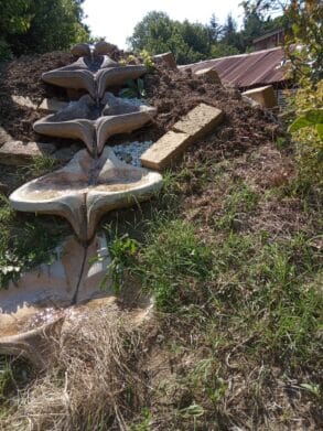 Accattivanti, le flowform, forme di flusso, sue creature artistiche, che portano l’acqua a realizzare una spirale in entrata ed una in uscita. Questo movimento in armonia con la natura e l’universo consente all’acqua di rivitalizzarsi, diventando salutare per tutti gli esseri viventi.