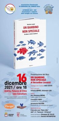 Un bambino non speciale, sarà presentato ad Andria, il 16 dicembre 2021, alle ore 18:00 presso l’aula consiliare del Comune di Andria. Dialogherà con l’autore il giornalista Aldo Losito.