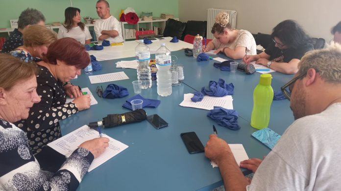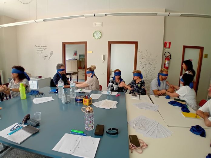 Il Laboratorio di Scrittura Creativa, organizzato dal Centro Diurno Cogestito Andria-Trani “Oltre il Muro”, Dipartimento di Salute Mentale ASL BAT e Cooperativa Sociale “Questa Città”, è proseguito, lunedì 3 giugno, grazie alle idee partecipative di Vincenzo, Rosaria, Mina, Francesca e Anna Maria. «Guardare ma non toccare!», be’, noi abbiamo pensato di fare esattamente il contrario. Sulle note di “Children” di Robert Miles, e lungo i sentieri verbali di Hemingway, si celebra il senso del tatto, gli occhi di Teresa, Davide, Maria Assunta, Eugenia, Francesca, Mariangela, Pasqua, Giacomo e Maria, hanno deciso di farsi bendare per tastare chi gli stava accanto, conoscersi e riconoscersi, scrutandosi timidamente e abbracciandosi calorosamente, perché l’essenziale è invisibile alla vista del piccolo principe che è in ciascuno di noi.